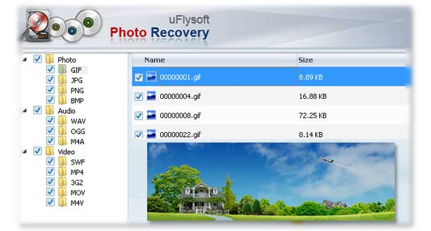 Değerli fotoğraflarınızı mı kaybettiniz? Panik yapmayın. UFlysoft Photo Recovery, kayıp, silinmiş, formatlanmış fotoğraf, video ve müzik dosyalarını kurtarmak için basit kullanımlı bir kurtarma aracıdır. (sabit disk, harici sabit disk, USB sürücüler, SD kart, SDHC, MicroSD kart, CF kart, xDkart) Dijital kamera ve daha fazla depolama aygıtlarını destekleyen yazılım, ayrıca JPG, PNG, BMP, GIF, AVI, MP4, MOV, 3GP, MP3, WAV, gibi her türlü resim, video ve ses formatlarını destekler.