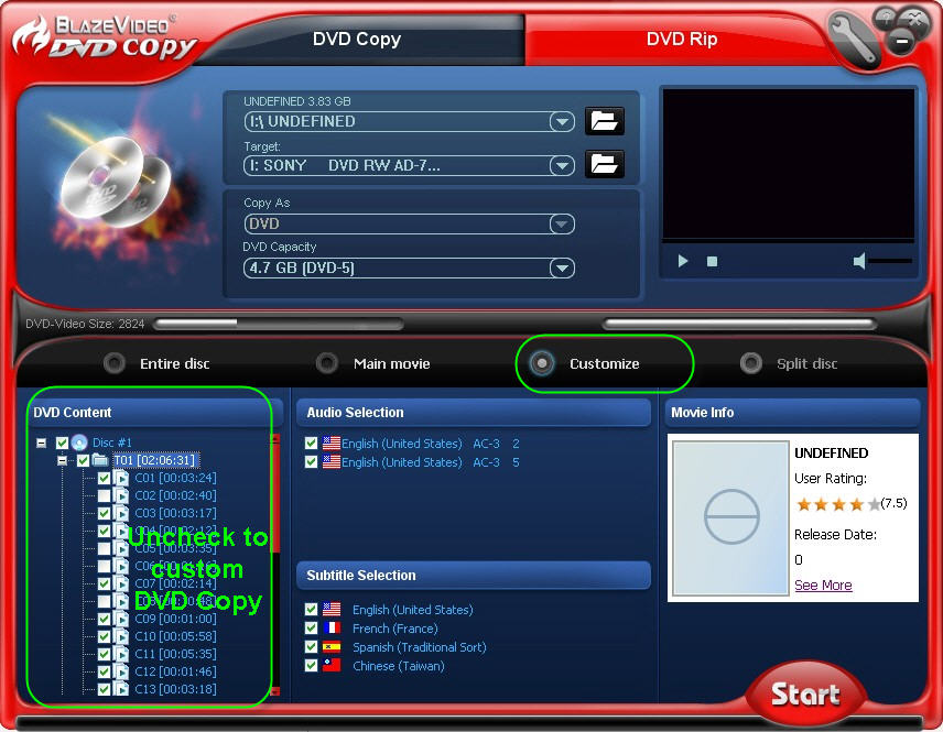BlazeVideo DVD Copy, neredeyse her DVD kopya korumasını kaldırarak hızlı bir şekilde bilgisayarınızdaki herhangi bir boş DVD diske veya sabit diskinize herhangi bir DVD’yi kopyalamanızı sağlar. Özgürce herhangi bir DVD’yi kopyalayabilirsiniz. Dahası, kalitesi mükemmel, esnek bir özeleştirme ve farklı DVD kopyalama modları ile ihtiyaçlarınızı karşılar.