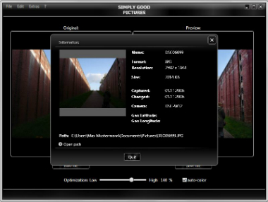 Simply Good Pictures, dünyanın en iyi tam otomatik görüntü iyileştirme yazılımlarında biridir. Son tatilinize ait kaç fotoğraf hala düzenlenmeyi mi bekliyor? Programın son optimizasyon algoritmalarını kullanarak muhteşem anılarınızın kötü fotoğraf kalitesi ile berbat olmasına izin vermeyin.