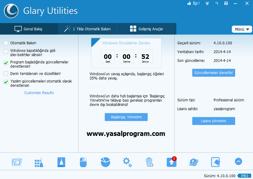 Glary Utilities PRO (Kampanya) 24 saat - 1 Yıllık