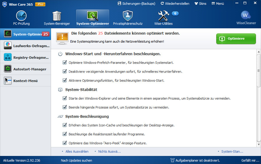 Wise Care 365 Pro, bilgisayarınızı tek tıklamada daha güvenli ve hızlı hale getiren sistem temizleme ve optimize programıdır. Wise Care 365, Kayıt Defteri düzenlemesi, disk ve diğer sunduğu birçok sistem araçları ile bilgisayarınızın performansını artırmanızı sağlar. Yazılım sistemdeki gereksiz kalıntıları temizler ve gereken sistem optimizasyonu ile bilgisayarınızın yavaşlamasını önler. Programın kayıt defteri düzenleme, disk temizleme, sistem optimize etme, gizliliğinizi koruma gibi birçok özelliği bulunmaktadır. Türkçe dil desteğine sahiptir.