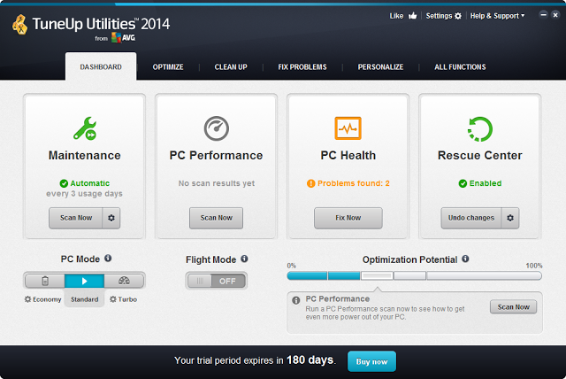 TuneUp Utilities, Windows işletim sisteminizi optimize eder ve performansını artırır. Program bilgisayardaki problemleri çözmekten, kurduğu basit araçlarla daha etkin bir işletim sistemine kavuşmanıza kadar gereken her türlü işlemi tek bir kontrol panelinden denetlemenizi sağlıyor.