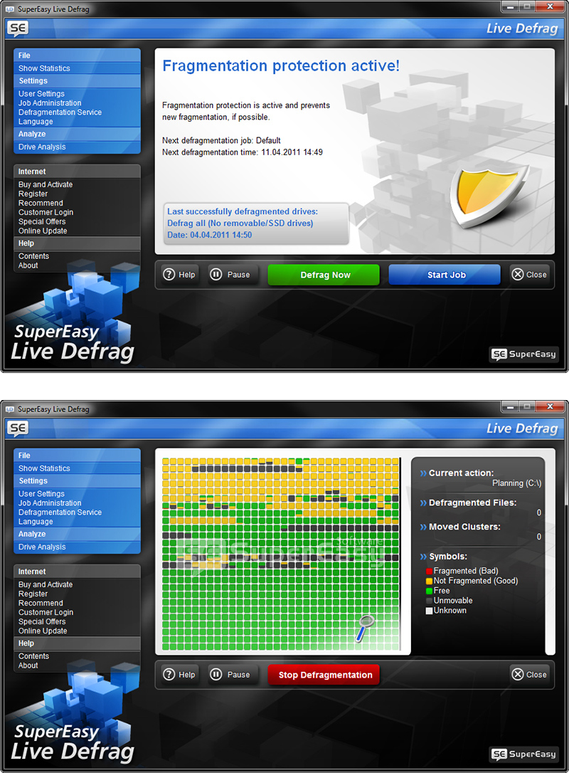Dosyaları kopyalarken veya onları açarken çok yavaş işlem gördüklerini mi düşünüyorsunuz? Bu gibi normal görevlerin bile sistemi zorladığını fark etmiş olabilirsiniz. Bilgisayarınızın her geçen gün yavaşlaması ve eski gücünü kaybetmesi sizi zor durumda bırakabilir. SuperEasy Live Defrag, bu gibi sorunları düzeltmek için tasarlanmış profesyonel bir programdır. Sabit diskinizdeki parçalanmaları birleştirerek, uygulamalar ve programların daha hızlı çalışmasını sağlar ve bilgisayarınızın genel performansını artırır. SuperEasy Live Defrag tam otomatik olarak sabit diskinizi temizler ve hemen sabit diskinizin eski performansına geri kavuşmasını profesyonel olarak sağlar. Programları daha hızlı çalıştırabilir, dosyaları daha hızlı kopyalayabilirsiniz. Ayrıca diğer tüm işlemlerinizin hızlandığını da fark edeceksinizdir.