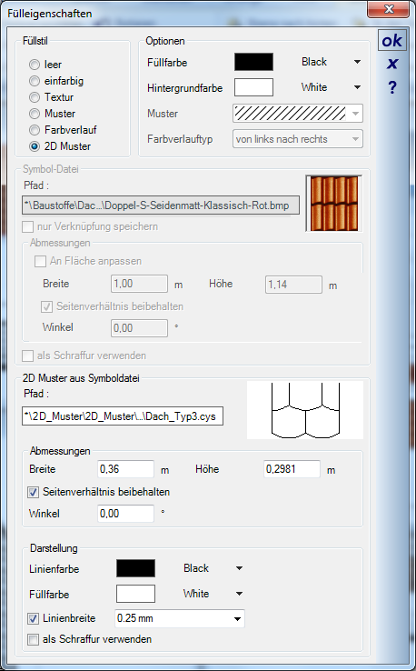 Şimdiye dek, tüm CAD sürümleri yalnızca iç pencereler çizerek standartlar tarafından sağlanan dolgu desenlerle dolduruluyordu. Sürüm 5 ile kendiniz seçebilir yada kendi kalıplarınızı çizebilirsiniz. Bu amaçla, 2D görüntülenir elemanları için dolgu özellikleri uzantıları hemen her element için geçerlidir ve şunlardan oluşur: