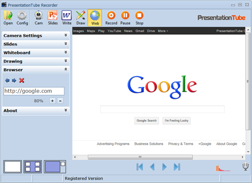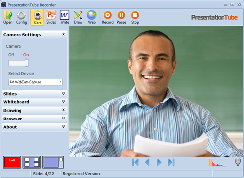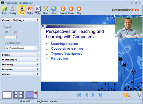 PresentationTube, eğitmenler, öğrenciler ve profesyoneller için ev veya ofis konforunda kendi PowerPoint sunumları kaydetmenize yardımcı olmak için tasarlanmış basit bir araçtır. Sunumları kaydederken İnternet bağlantısına gerek yoktur. Sunucunun ses ve video, PowerPoint slaytları, çizimleri, el yazısını PresentationTube ağına senkronize ederek video yüklemesini sağlar.