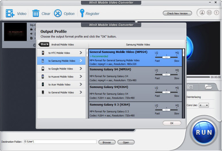 WinX Mobile Video Converter, hızlı bir şekilde herhangi bir Android mobil cihazınız için tüm videolarınızı dönüştürebilir. Farklı videoları oynatmanızı sağlayan herhangi bir Android cep, tablet ve diğer cihazlarınıza MKV, AVI, MP4, WMV, MOV, FLV, AVCHD, M2TS formatındaki videoları dönüştürebilir. Yeni HTC One, Samsung Galaxy S5, Galaxy Not, Amazon Kindle Fire, Google Nexus 7, vb. gibi birçok akıllı telefonu destekler.