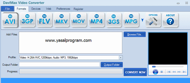 Davimax Video Converter, bir kaç tıklamayla video dönüştürmenizi sağlar. Sadece profil ve çıkış klasörü seçin ve dönüştürmeye başlayın. Davimax Video Converter, tüm popüler video/ses dosyaları dönüştürmeniz için etkili bir yol sunar. Hatta YouTube videoları, Dailymotion ve vimeo videolarını kolayca dönüştürebilirsiniz.