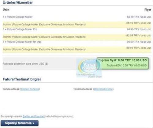 Son olarak seçtiğiniz ürünleri, ürün veya ürünlerin tutarını ve lisanslarını içeren sayfa karşınıza gelecek.