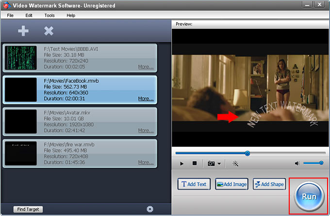 Oluşturduğunuz videoları izleyen kişilere, video kaynağını göstermek ister misiniz? Video Watermark Pro ile videolarınıza filigran ekleyebileceksiniz. Program videolara, görüntü, logo, işaret, animasyonlu resim, metin gömmenize izin verir. Kullanımı oldukça basit ve kullanıcı dostu bir arayüze sahiptir. Yüksek hızda çalışır, böylece videolarınızı filigran işlenmesi oldukça hızlı gerçekleşir.