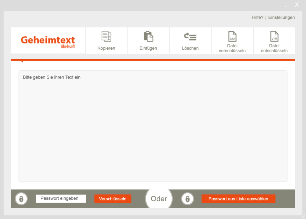 Abelssoft Geheimtext dosyalarınızı yada metinlerinizi kolay ve hızlıca şifreleyebileceğiniz bir programıdır.Şifreleme sistemi olarak ABD devlet belgeleri tarafından onaylanan AES-256 algoritmasını kullanmaktadır.