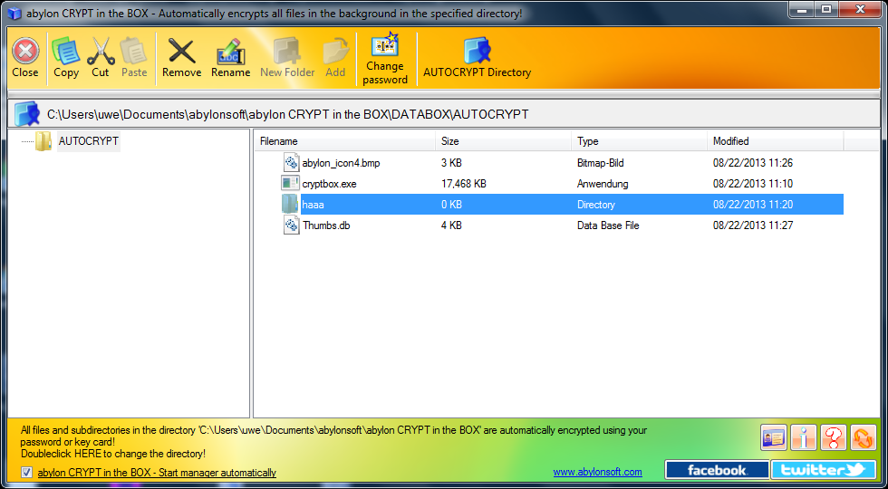 Abylon CRYPT in the BOX kullanımı kolay ve otomatik, önemli dosyaları şifreleme progrmaıdır. Şifreli klasörlere windows explorer ile ulaşabilir, kapyalama, ilaveler, düzenlemeler gibi işlemleri kolaylıkla yapabilirsiniz. Yedeklenen verilere erişmek için sadece bir kez kullanıcı şifrenizi girmeniz yeterlidir. Dosyalarda yapacağınız değişiklikler otomatik olarak şifrelenmiş dosyaların içine kopyalanır.