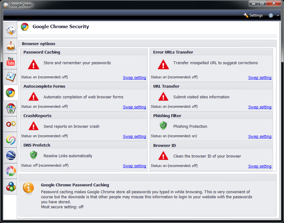 Google Desktop, Google Chrome, Google Picasa, Google Earth ve Google Araç Çubuğu gibi çoğu Google ürünleri kullanımız ile ilgili veriler toplar. GoogleClean yazılımı ise bunu önlemek ve bu veri transferine engel olmak için tasarlanmıştır. Size herhangi bir endişe yaşamadan tüm Google ürünlerini kullanmanıza olanak sağlar. GoogleClean Google ürünleri işlevselliğini etkilemez, sadece sizden toplanan verilerin alınmasına engel olur…