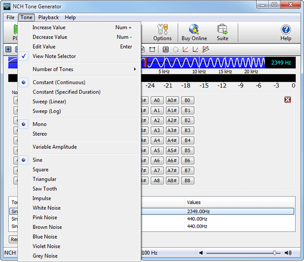 Tone Generator, ses testleri yapabilmenizi, seslerdeki parazitleri ve sorunları temizleyebilmenizi sağlayan bir yazılımdır. Gürültü dalga formlarını düzenleyebileceğiniz, bir sinüs dalga jeneratörü, ses frekans jeneratörü veya sinyal jeneratörü olarak kullanılabilecek kolay kullanımlı bir programdır. Seslerle uğraşanlar için yararlı bir yazılımdır.