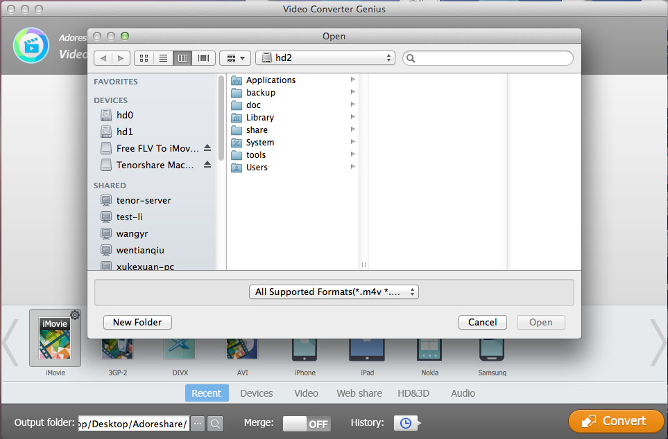 - iMovie, iDVD’de oynatmak ve YouTube, Vimeo’da paylaşım yapmak için dönüştürme sağlar;