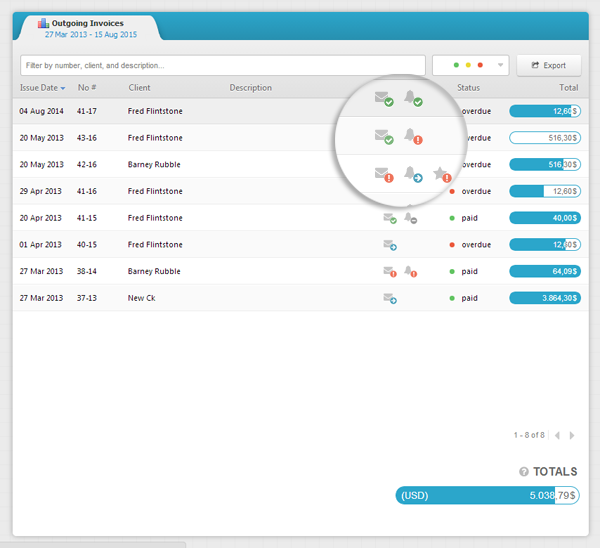Kendi işini yapanlar genelde çok meşgul olabilirler ve çoğu kişi müşterilerine fatura göndermeyi unutabilir. Eğer otomatik fatura göndermek için iyi bir yol arıyorsanız aradığınızı yazılımı buldunuz demektir! HTML Invoice Generator faturalarınızı, fiyatları, teslim takiplerini ve teşekkür notlarını otomatik olarak takip etmenizi sağlayarak her zamankinden daha iyi ve etkili çalışmanıza katkı sunar. HTML Invoice Generator ile aynı zamanda kredi kartı ve PayPal ile ödemeler alabilir ve profesyonel faturalar üretebilirsiniz. Belirli bir müşteriye fatura göndermek için dosya veya evrak karıştırmak zorunda artık değilsiniz. HTML Invoice Generator kullandığınızda faturalar ve ödemelerin tümü kolay erişim için tek bir yerde tutulur.