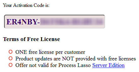 *Process Lasso Server Edition için geçerli değildir