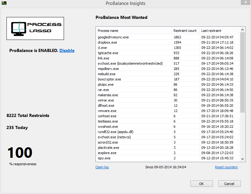 Process Lasso PC’nizin tepki süresini azaltabilen ve kararlılığını artırabilen eşsiz bir yeni teknolojidir. Windows, yapısı itibariyle programların işlemcinizi tek başına kullanmasına izin verir ve bu da takılmalara ve kilitlenmelere yol açar. ProBalance (İşlem Dengesi) teknolojisi ise çalışan programların önceliğini ayarlayarak PC’nizin tepki süresini etkilemesine engel olur.