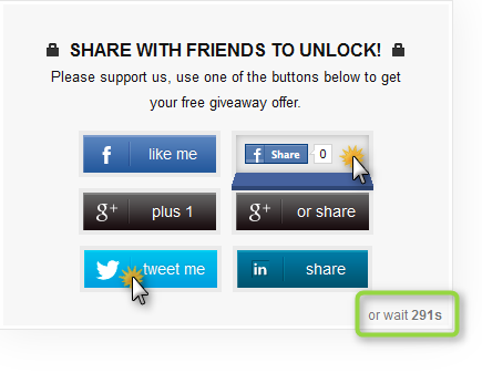 Lisans almak için Facebook veya Tweet ile paylaşım yapabilir yada sağ alttaki geri sayım saatinin sıfırlanmasını bekleyebilirsiniz.