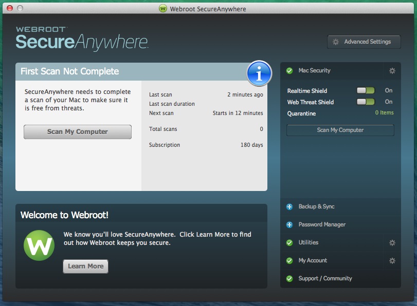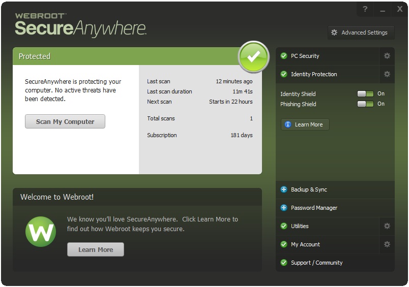 Webroot SecureAnywhere, çok katmanlı bir güvenlik sunan anti-virüs programıdır. Virüs, Spyware, Adware, Solucanlar, Pop-up’lar, Trojan, Keylogger ve Rootkit gibi güvenlik tehditleri karşı geniş bir yelpazede koruma sağlar. Zararlılar bilgisayarınıza zaten bulaşmış ise, gelişmiş bulma yöntemleri ile zararlı programları bulup yok edecektir…