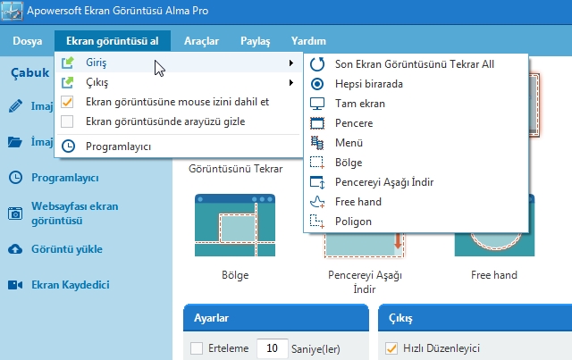 Apowersoft Ekran Görüntüsü Alma Pro birkaç etkinlik alanında ekran görüntüsü almanızı sağlayan tek yazılımdır.