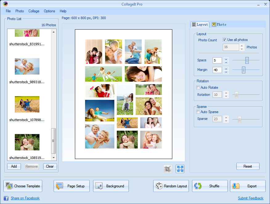 CollageIt pro, otomatik olarak fotoğraflarınızdan kolajlar yapmanızı sağlayan kullanımı kolay ve pratik bir kolaj yapma programıdır. Birkaç saniyede, fotoğraflardan etkileyici kolâjlar oluşturabilirsiniz. Kendi tarzınızda benzersiz bir şekilde kolâjlar üretebilir, arkadaşlarınız ve ailenizle paylaşabilirsiniz.