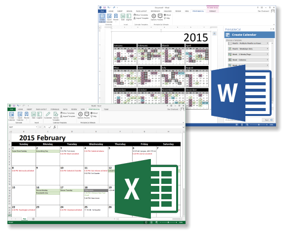 PrintableCal Microsoft Word ve Excel için farklı kaynaklardan gelen verileri içeren yazdırılabilir takvimleri oluşturmanızı sağlar. PrintableCal VueMinder, Google Takvim, iCloud, Outlook, tatil, iCalendar dosyaları veya URL’leri ve çeşitli daha birçok takvim kalıp ve ayarları ile yüklü olarak geliyor.