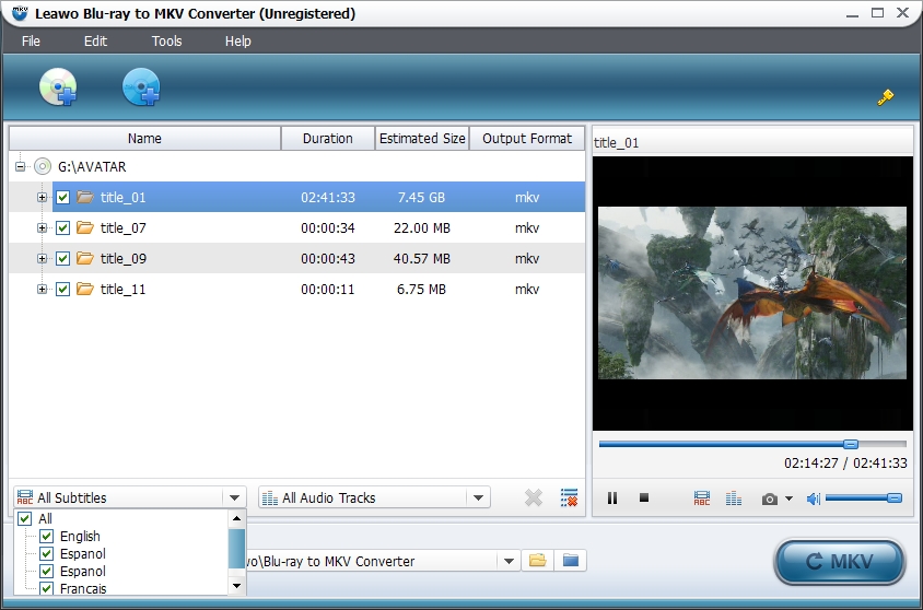 Leawo Blu-ray to MKV Converter, Blu-ray veya DVD’leri MKV’ye dönüştürmeye yönelik profesyonel bir Blu-ray rip’leme ve dönüştürme yazılımıdır. Disk şifresi çözme desteği sayesinde AACS, BD+ ve en son MKB seviyesindeki korumaya sahip Blu-ray disklerinin şifresini kolayca çözebilir.