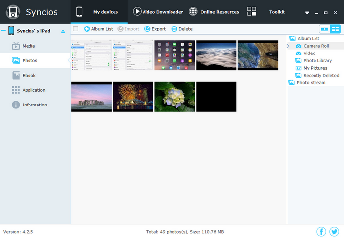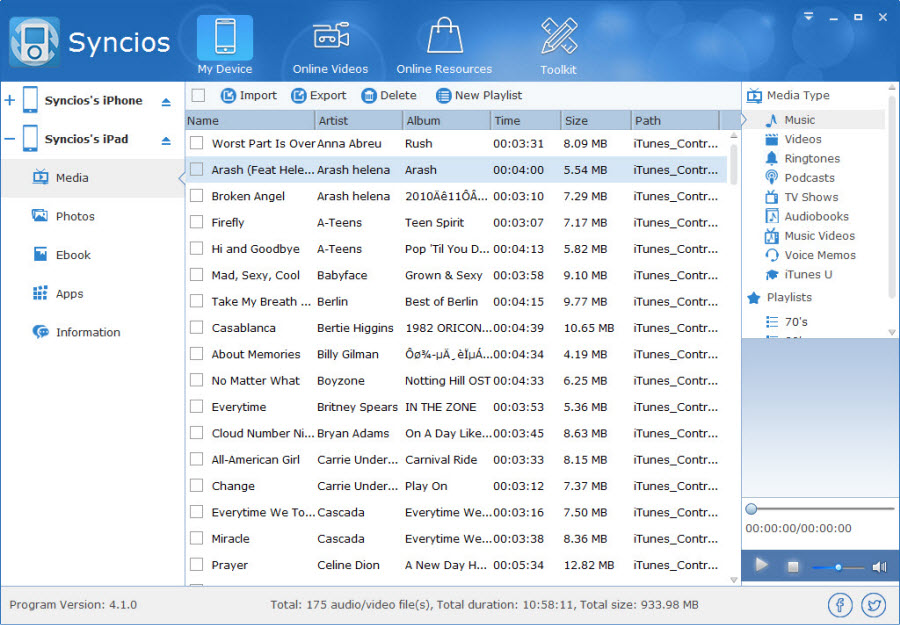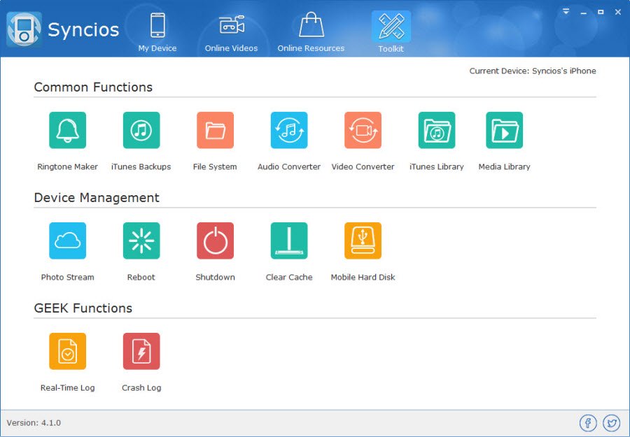 Syncios Pro, iOS sistemli cihazlarınızdaki verileri yönetmenizi sağlayan bir yazılımdır. iOS cihazlarınızdaki önemli verileri bilgisayarınıza yedekleyebilir ve kolayca geri yükleyebilirsiniz. Bilgisayar ve iPad, iPhone, iPod cihazları arasında veri transferi yapabilirsiniz. Ayrıca video ve müzikleri cihazlarınıza uygun formatlara dönüştürerek yükleyebilirsiniz. Yazılımın Türkçe dil desteği bulunmaktadır.