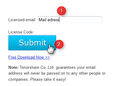 Mail adresinizi yazın ve Submit butonuna tıklayın. lisans anahtarı görünecektir ,buradan kopyalayıp alınız. Free Download Now butonu ile yazılımı indirebilirsiniz.
