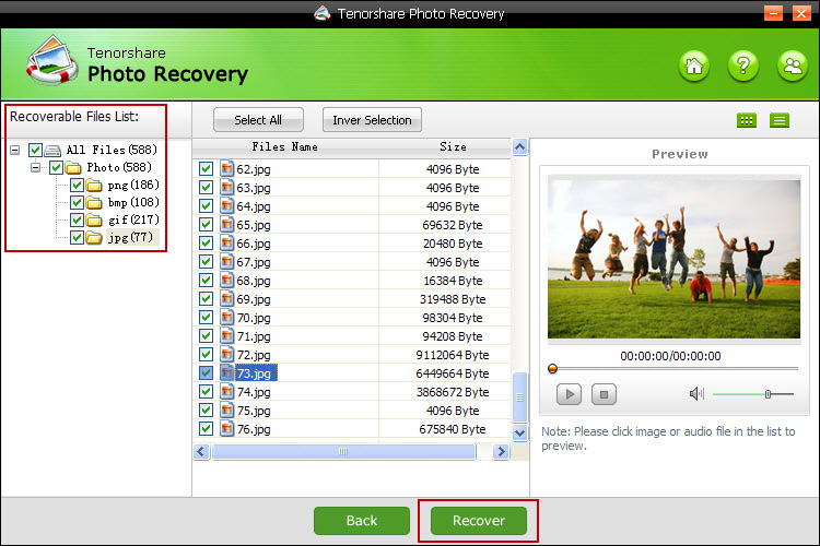 *JPG, PNG, PSD, GIF, RAW ve vb gibi, tüm popüler formatlardaki resimleri kurtarın.