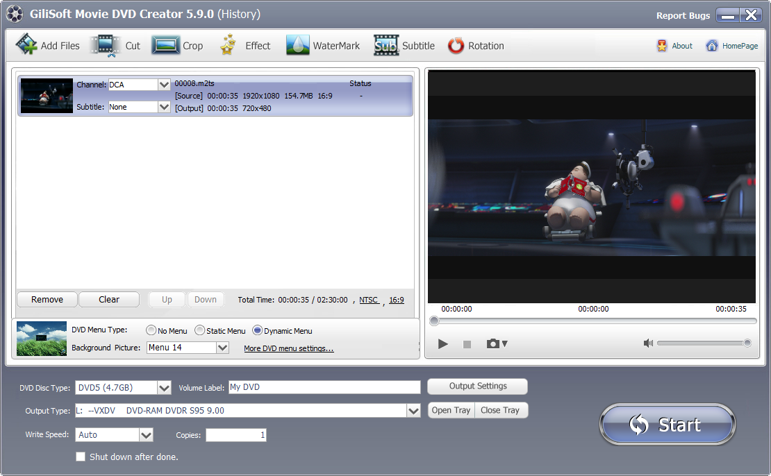 Gilisoft Movie DVD Converter ile fantastik videolarınızı, filmlerinizi, tüm favori tatil, düğün, aile resimlerinizi ve diğer içeriklerinizi kolayca DVD disklere yazdırabilirsiniz. Oluşturduğunuz DVD içeriklerinizi arkadaşlarınız ve ailenizle paylaşabilirsiniz. Gilisoft Movie DVD Converter DVD klasörleri ve ISO dosyalarını destekler. (yasalprogram.com) Gilisoft Movie DVD Converter ile kendi DVD’lerinize şık menüler oluşturabilir ve arka plan resmi ve müziği ekleyerek DVD’lerinizi kişiselleştirerek özelleştirebilirsiniz. Buna ek olarak, videoları düzenleyebilir, kişiselleştirilmiş DVD oluşturmak için menü, konu ve açılış resmi, altyazı ve müzikler ekleyebilirsiniz. (yasalprogram.com) Hızlı ve kullanımı kolaydır, sadece birkaç tıklama ile DVD’lere filmlerinizi yazdırabilirsiniz.