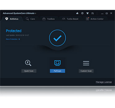 Advanced SystemCare 8 Ultimate, kanıtlanmış kapsamlı PC bakımı ve optimize yeteneğinin yanı sıra artık anti-virüs desteği de içeriyor. Virüs, spyware ve phishing saldırılarına karşı gerçek zamanlı koruma, güçlü işlevsellik ve zararlı yazılımları temizleme özelliğine sahip.