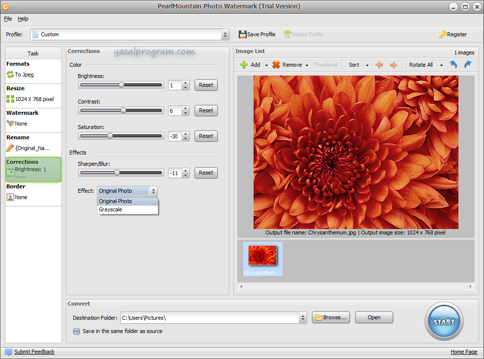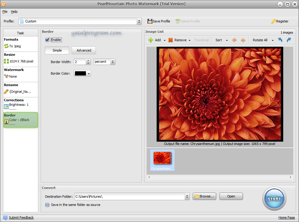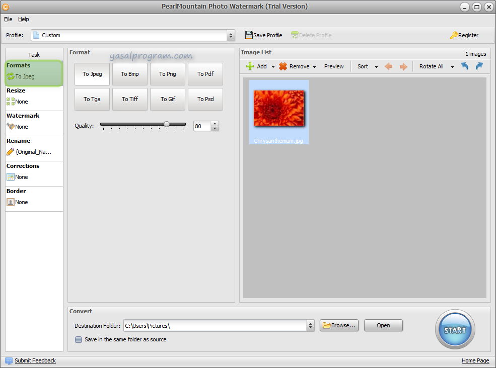 PearlMountain Photo Watermark, dijital fotoğraflarınıza toplu iş modunda , görüntü filigran, metin filigran, logo ekleyerek fotoğraflarınızın telif haklarını kormanızı sağlar. PearlMountain Photo Watermark ile kaç fotoğrafa filigran eklemek istiyorsanız isteyin,toplu iş modu ile birkaç fare tıklaması ile filigran ekleyebilirsiniz.