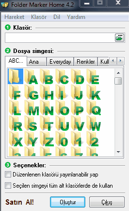 *Folder Marker Home ile ana klasörün rengini değiştirebilirsiniz. Normal, koyu ve açık renkler ile 36 simge bulunur.