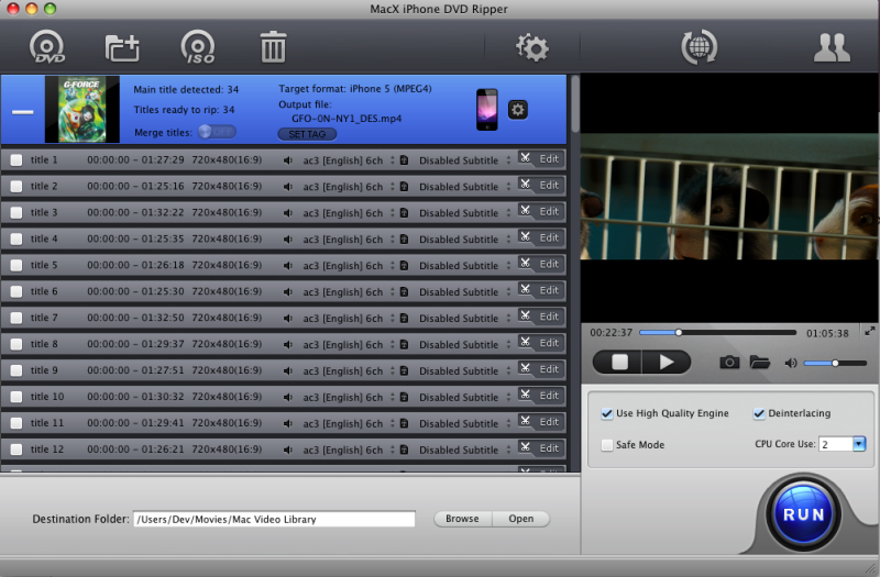 MacX iPhone DVD Ripper ile kolayca iPhone, iPad, Apple TV, iTunes’da izlemek için korumalı DVD’lerdeki filmlerinizi kopyalayabilirsiniz. iPhone 6/6 Plus/5S/5C/5/4S, iPad (iPad Air 2 ve iPad Mini 3 dahil) üzerinde oynatmak için DVD’lerin içeriklerini cihazınıza taşıyın. Kullanımı kolay ve hızlıdır, yüksek kaliteli video kopyalama ve video düzenleme özelliklere sahiptir. Sevdiğinizi DVD filmleri Apple cihazlarınıza kopyalayarak aktarabilirsiniz…