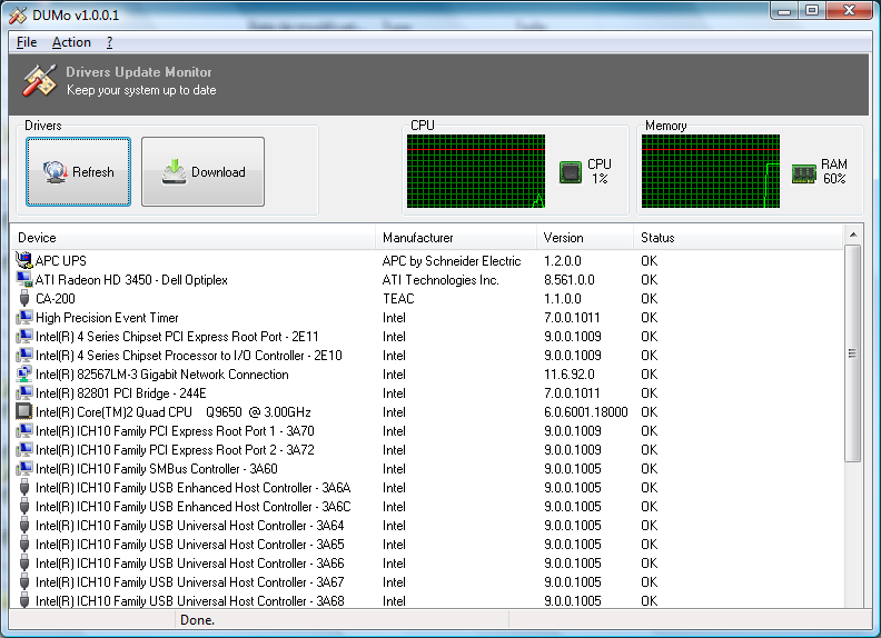 DUMO gerekli donanım sürücülerinin en son sürümününe güncelleyip kullanmanızı sağlayan ve bilgisayarınızı güvende tutan bir yazılımdır.
