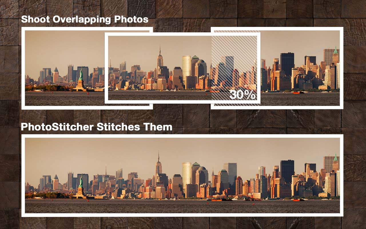 Normalde güzel bir panoramik fotoğraf çekebilmek için size geniş açı lens’li bir kamera gerekir. Profesyonel bir fotoğraf makinasına sahip olmasanız bile, mükemmel manzara görüntülerini PhotoStitcher ile bir araya getirip kolayca oluşturabilirsiniz. PhotoStitcher otomatik olarak tek tek resimleri alır ve göz alıcı profesyonel görünümlü panorama fotoğraf için hizalar.