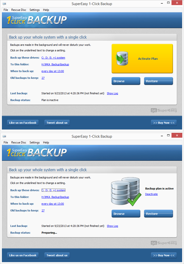 SuperEasy 1-Click Backup, tek bir tıklama ile veri kaybına karşı sisteminizi yedekleyerek korumanızı sağlar. Sistem ayarları otomatik olarak tarar ve yapılan güncellemeleri, değişiklikleri algılayarak yedekler oluşturabilir. Özelleştirilebilir ayarları sayesinde yedekleme bölümlerini kendi istediğiniz doğrultusunda ayarlayabilirsiniz. Arka planda çalışarak yedek oluşturabilir.