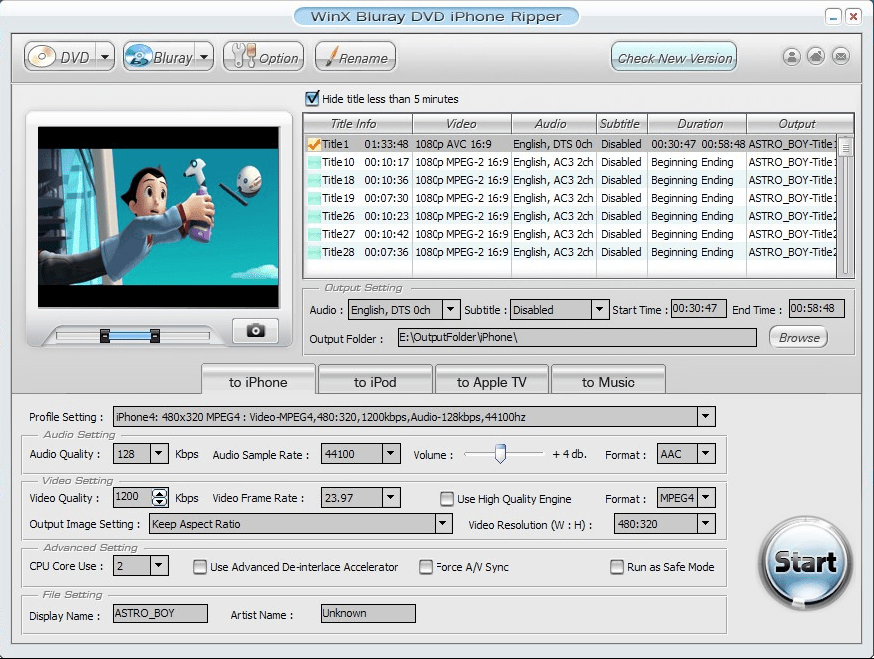 WinX DVD to iPhone Ripper, size iPhone 6/6 Plus / 5S / 5C’nin yanı sıra iPad / Air / Mini (Yeni) cihazlarınıza Hollywood ve Disney DVD filmlerini uygun formatlara dönüştürerek yüklemeniz için kolay bir yol sağlar. iTunes’den film satın alırken format uyumluluğu hakkında endişelenmenize artık gerek kalmadı. DVD filmlerinizi sıkıştırabilir ve iPhone, iPhone, iPad cihazlarınız üzerinde düzgün oynatmak için MP4 H.264 video formatlarına dönüştürebilirsiniz. DVD filmlerinizi iPhone 4S/5/5S/5C/6/6 Plus cihazlarınız yanı sıra iPad/Air/Mini ve iTunes, Apple TV için de dönüştürebilirsiniz.