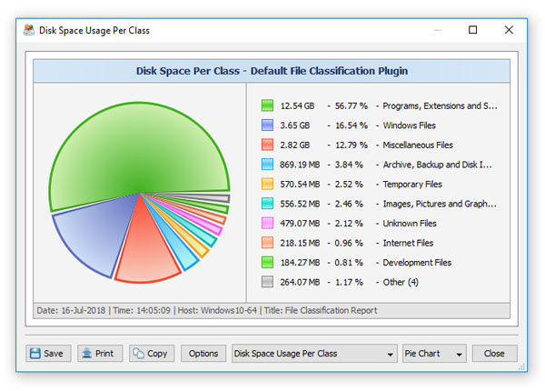 Bilgileri HTML, PDF, Excel, CSV, XML, metin olarak kaydedebilirsiniz. DiskSorter 3.000 ‘den fazla farklı dosya formatını destekler. Türü, uzantısı, isim, tarih vb gibi sınıflandırma yapmanıza olanak sağlar … Grafikler oluşturmanıza ve filtreler uygulamanıza izin verir.