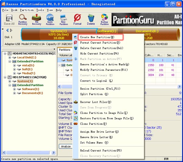 Eassos PartitionGuru Pro bölüm yöneticisi ile, sanal diskler oluşturabilir, oluşturulan biçimi silebilir ve gizleme, yeniden boyutlandırma, bölme, klonlama ve bölüm yedekleme ve daha fazlasını kolayca yapabilirsiniz.