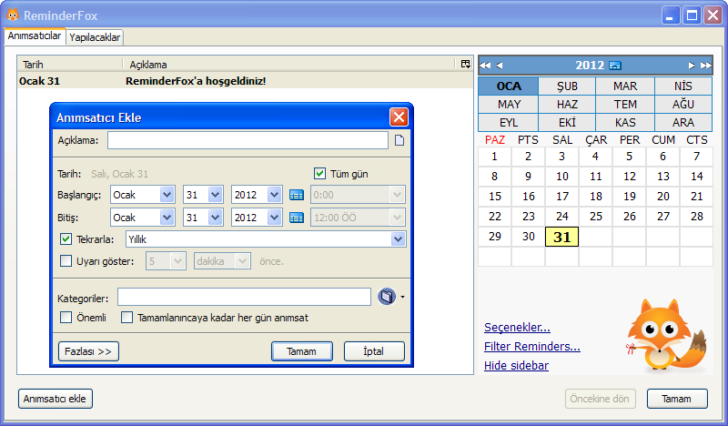 T�rk�e dil deste�i olan eklenti ile takvim �zerinden ayarlayabilirsiniz.