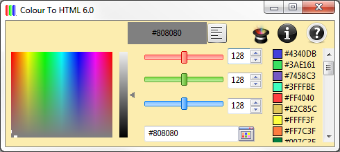 Renklerin HTML kodunu �reten �cretsiz bir Windows uygulamas�d�r. Web siteleri i�in renk html kodu �retebilen faydal� bir ara�t�r. �zellikleri:Kullan�m� kolay bir aray�z.