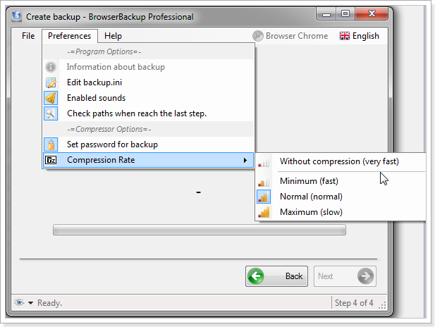 BrowserBackup ile yer imlerinizi, posta, ki�iler, h�zl� arama, notlar, �ifreler, deriler, oturumlar, ara� �ubu�u, eklenti , tercihlerinizi yerel bir s�r�c�ye , a� klas�r�, CD / DVD ve hatta FTP sunucuya yedekleme yapar !Program aray�z� acemi ve deneyimli uzmanlar taraf�ndan etkili bir �ekilde kullan�labilir �ekilde tasarlanm��t�r BrowserBackup �cretli bir yaz�l�m ama �imdi �cretsiz olarak kullan�labilir.Yedekleme i�in parola ayarlayabilir,belirlenen k�s�mlar� se�erek yedek alabilirsiniz. ki�isel veya kurumsal verilerinize yetkisiz eri�imi engellemek i�in end�stri standard� 256bit AES �ifreleme ile yedekleme koruyabilirsiniz.