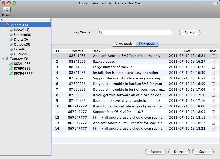 *Transfer SMS into .db file and print it on Mac