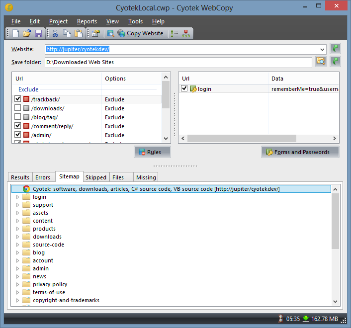 Cyotek WebCopy temel �zellikleri: