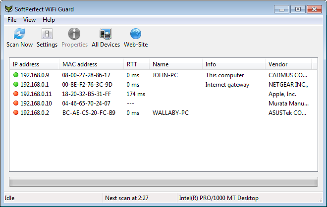 SoftPerfect WiFi Guard, kablosuz eri�imi denetlemek i�in tasarlanm�� bir uygulamad�r, yaz�l�m size kullan�m kolayl��� ve ak�ll� g�zetim yetenekleri getiriyor. Sizin a��n�z� izinsiz kullanan ki�ileri kolayca tespit edin,SoftPerfect WiFi Guard basit bir �ekilde �al���r, yetkisiz cihazlar� bulmak i�in a�'� tarar,B�yle bir sald�r� tespit edilirse sizi uyar�r.Windows, Mac OS X ve Linux �zerinde �al���r.Tamamen �cretsiz, ta��nabilir bir s�r�m� vard�r ve herhangi bir adware, spyware ya da malware i�ermez.