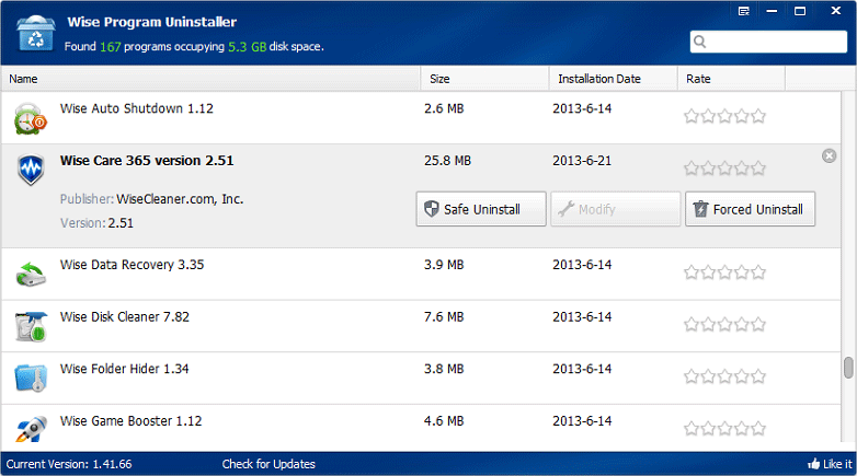G�venli Kald�r veya Zorla Kald�rBazen, programlar g�venli kald�rma taraf�ndan kald�r�lamaz. Kald�r�lamayan baz� inat�� programlar ve kay�tlar� rahats�z edicidir. Ama Wise Uninstaller'in Zorla Kald�r �zelli�i ile kald�rma kolayca ve ne�eyle olabilir.