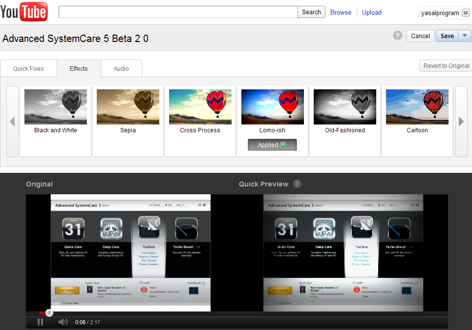 Bu ba�lant�y� t�klayarak, orijinal video ve d�zenlenmi� videounun g�sterildi�i bir d�zenleme video ekran� a��l�r. Video d�zenleme se�enekleri , H�zl� D�zeltmeler sekmesi, video d�zeltme ve stabilize etmek i�in do�ru ���k ve renk, sola veya sa�a �evirme , video ayd�nlatma, renklendirme ve doygunluk ayarlamad�r bu i�lemleri �nizlemeli yapabilirsiniz.