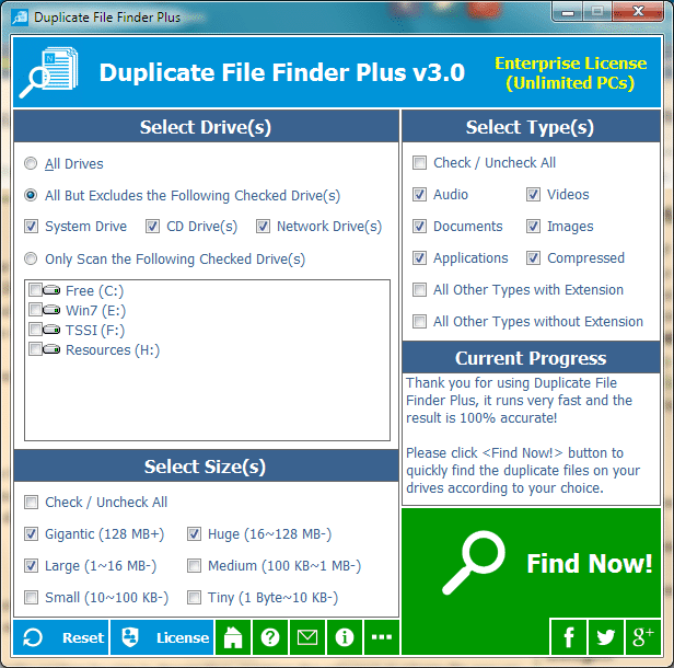 Duplicate File Finder Plus � �ok h�zl� bir �ekilde sabit diskinizde bulunan dosya i�eri�i ayn� olan �ift dosyalar� bulur. B�ylece istenmeyen ve de�erli diskinizde yer harcayan dosyalar� bulabilir ve silebilir ve kar���kl�klar�n �n�ne ge�ebilirsiniz.